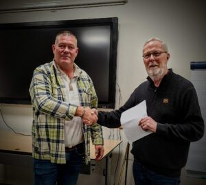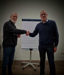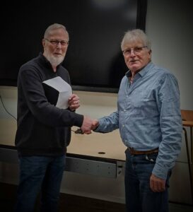 door Harm de Roo (bondsbestuurslid) en Egbert Hoorn voor 25 jaar lidmaatschap.